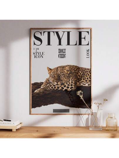 1幅豹纹风格墙面艺术帆布画,时尚猎豹纹帆布画,杂志封面海报,少女风装饰,适合卧室、客厅或宿舍墙面装饰,送给她的礼物,可选无框或有框。 - 彩色 - 查看 1