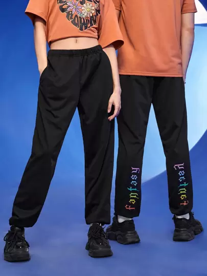 Manfinity 1入組字母圖案斜口袋衛褲 - 黑色 - 查看 1