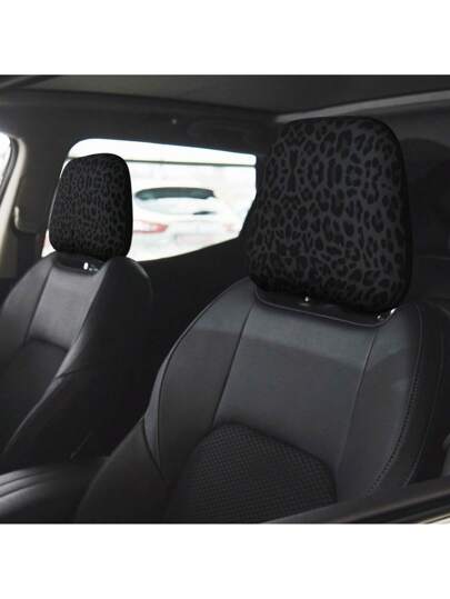 1件轻便透气、防污耐用的豹纹弹力冰丝汽车座椅头枕套,通用型 - 均碼 - 查看 1