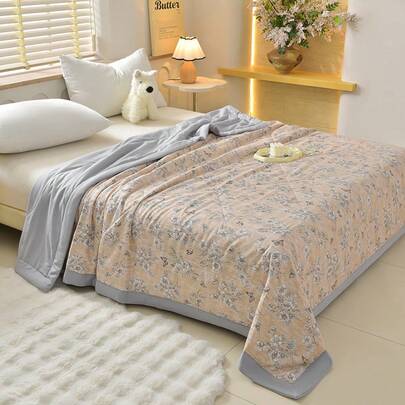 1件轻薄夏季被子,凉感毯,纯色,多种花卉图案可选,高品质夏季被子,可机洗,柔软亲肤。