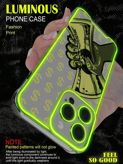 1 件發光高半透明 Tpu 發光手機殼,印有時尚圖案,相容於 Iphone 11/11 Promax/12/12 Promax/13/13 Promax/14/14 Promax/15/15 Promax/15 Plus/15 Pro - 芥末黃 - 查看 2