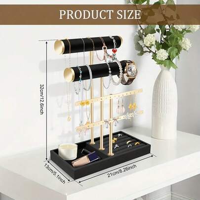 1件装豪华珠宝收纳架,黑金或白金配色,多层设计,可有序展示项链、手链、耳环,适用于家居、商店、聚会、宿舍等场所,时尚设计,结构坚固,是家居装饰爱好者的理想之选。