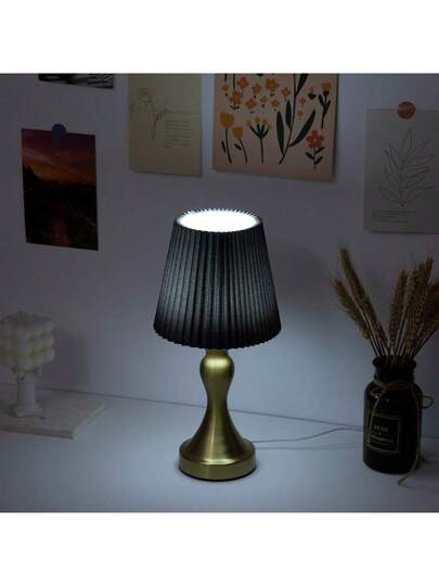 1 件豪华褶皱灯罩铝合金底座 USB 供电三色可调光台灯 - 三色調光 - 查看 1