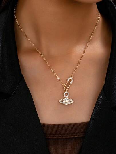 1件奢华水钻土星吊坠项链,高品质百搭配饰,适合女性日常佩戴、派对、节日等场合。