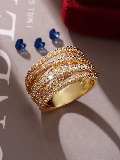 1枚奢华闪亮交叉戒指,适合男士日常佩戴、运动、派对及其他场合。 - 金黃色 - 查看 1