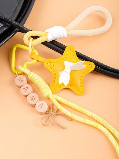1个妈妈主题钥匙腕带,多巴胺色尼龙绳钥匙扣,配天然木珠、皮革星星装饰,防丢钥匙圈,适用于包包