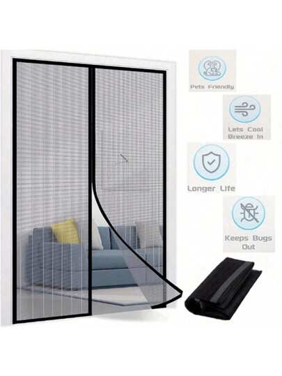 1 件磁性纱门 - 无缝闭合,重型,免提,防宠物 - 防风雨防虫屏障,适用于家庭和庭院 - 易于安装 - 黑色 - 查看 1