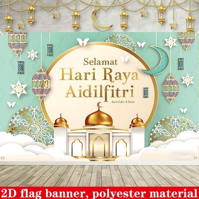 1 件马来西亚开斋节装饰聚酯旗帜,节日场景装饰 - 彩色 - 查看 3