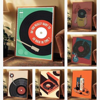 1张中世纪复古风格音乐黑胶唱片海报,高清帆布墙艺术海报,适合家居、客厅、卧室、酒吧等场所的墙面艺术装饰。 - 彩色 - 查看 1