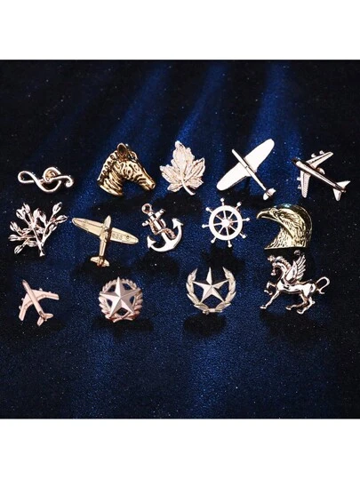 1 件男士金色/银色锚、头盔、枫叶、树、鹰、斑马、飞马、音符、飞机、五角星设计简约时尚商务风格迷你翻领别针/胸针衬衫领配饰衬衫、西装外套、帽子、包包别针衣服包饰学校 Kpop 背包教师用品包饰可爱办公室配件衬衫 - 彩色 - 查看 13