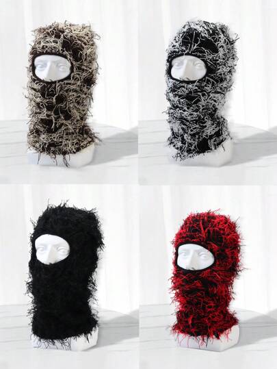 1入組男士時尚提花針織豆豆帽帶長毛絨襯墊,可拆卸口罩,合適的適用於日常穿著,滑雪和防風 - 黑色 - 查看 1