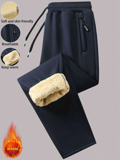 男士加厚保暖内衬户外徒步运动休闲直筒裤,秋冬季款 - 藏蓝色 - 查看 1