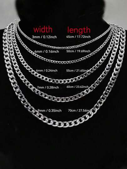 1 件男士钛钢链项链,纯链颈链,个性化配饰 - 銀色 - 查看 8