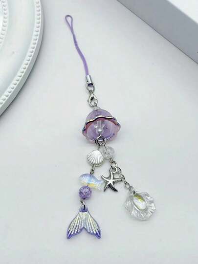 1条美人鱼风格手机挂绳,紫色贝壳,海星串珠手机带,美人鱼手机挂饰,适合作为礼物送给母亲、家人、朋友,生日、节日,手机配件 - 淡紫色 - 查看 1