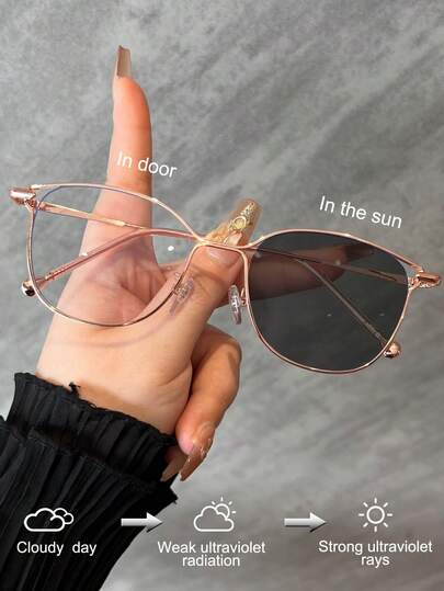 1 件金属猫眼空心框架超轻装饰镜,多用途室内电脑镜和户外变色时尚眼镜,适合夏季海滩度假、户外、旅行 - 透明變成黑色 - 查看 15