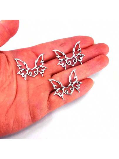 1入金屬掛墜,中空蝴蝶和心形設計,適用於項鍊、手鍊、鑰匙扣、耳環等,作為生日禮物 - 銀色 - 查看 1
