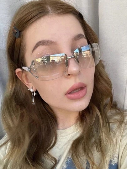 1入金屬Y2k運動風太陽鏡,街頭太陽鏡沙灘眼鏡 - 銀色 - 查看 4