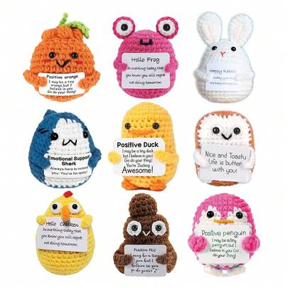 1个迷你正能量钩针动物毛绒玩偶,手工钩针填充玩偶,生日礼物,桌面装饰,积极企鹅鲨鱼毛绒摆件,情人节礼物,送给女性、男性、同事、朋友、青少年 - 混色 - 查看 24