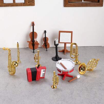 1件迷你逼真乐器模型手风琴萨克斯古典乐器微缩娃娃屋场景装饰玩具 - 彩色 - 查看 8