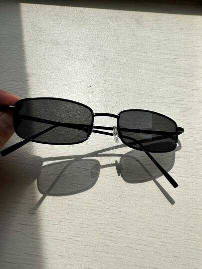 POLASUP 1 件迷你复古方形金属框架时尚眼镜,黑色、红色,Y2K 朋克风格,夏季配饰道具,适合夏季海滩度假、户外、旅行 - 黑色 - 查看 1