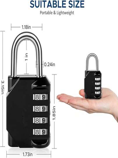 1個小型防水防銹4位數字密碼控制的鎖,適用於行李,健身房,櫥櫃,背包,抽屜,工具箱等用途 - 黑色 - 查看 5