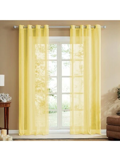 1 件簡約北歐現代風格純色透明窗簾 - 適合臥室、客廳、飯店客房等 - 黃色 - 查看 1