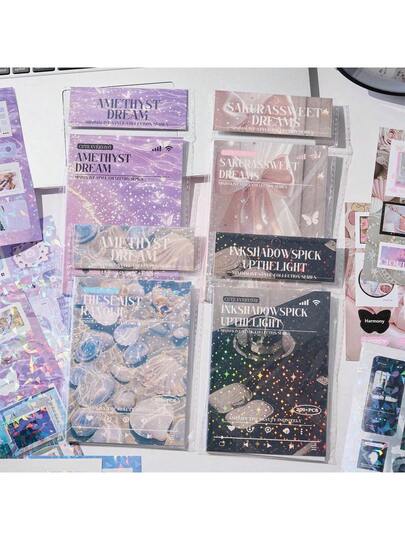 1 件极简风格贴纸书,适用于剪贴簿、手机壳装饰、工艺品的 Ins 美学模切贴纸 - 彩色 - 查看 10