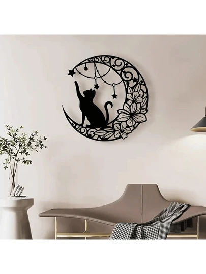 1入組月亮貓金屬鐵藝牆藝術,極簡主義和美學掛飾,適用於客廳、臥室、家居裝飾 - 黑色 - 查看 2