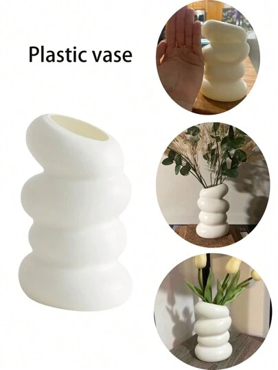 1入組多功能塑料花瓶,客廳咖啡桌裝飾,臥室桌面飾品,可以放置乾燥花和鮮花的創意花器 - 白色 - 查看 1