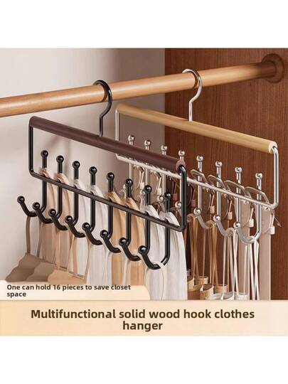 1个多功能木制收纳挂钩,带16个可旋转防滑木钩,可挂衣服,家用拉出式衣柜晾衣架,帽子收纳架,节省衣柜空间,适用于家庭和宿舍衣柜,可存放内衣、背心、腰带、领带和帽子,收纳整理架。 - 彩色 - 查看 4