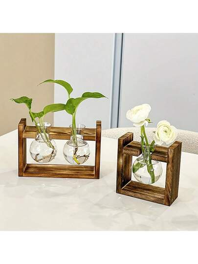 1件套多管组合,含木质卡片架、PET材质球形水管,适用于水培绿植繁殖,情人节多组件套装,创意客厅办公桌家居装饰花瓶 - 彩色 - 查看 1