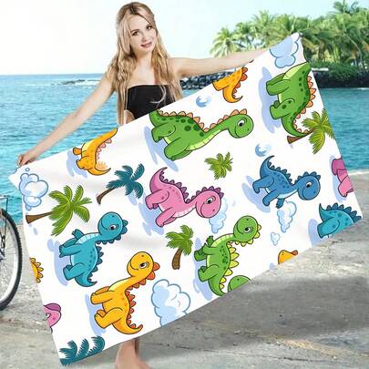 1条多色恐龙印花数码沙滩巾 - 超强吸水,超细纤维,现代针织面料,是夏季海滩、游泳和露营的理想之选,现代沙滩毯超细纤维材质