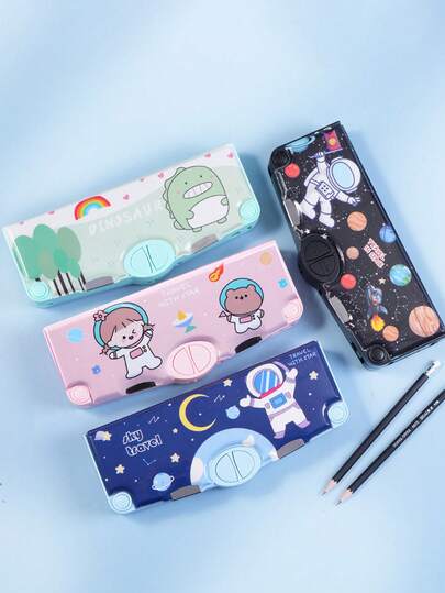 1个多功能文具盒,卡通大容量铅笔盒,带卷笔刀、剪刀、学习用品,弹出式多功能铅笔盒 - 單件 - 查看 1