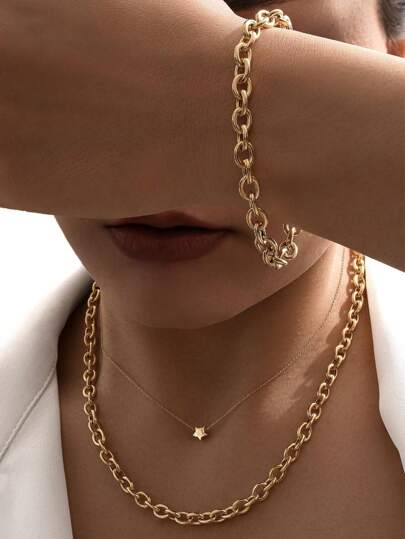 1入組女性多層頸鏈和手鐲套裝,時尚派對珠寶禮物 - 星星 - 查看 1