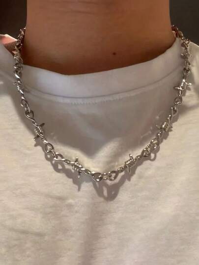 1pc Niche Retro Thorn Necklace, Thorn Clavicle Chain National Fashion Pants Chain,-Hop Street Cool Punk Necklace Men And Women