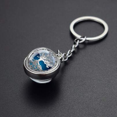 1个北欧符文生命之树钥匙扣,蓝银色图案,双面玻璃球吊坠,时尚饰品配件,男女通用钥匙扣,装饰挂件 - 銀色 - 查看 4