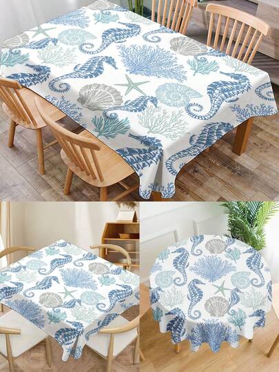 1件海洋系列珊瑚图案印花桌布,现代涤纶长方形/圆形防水桌布,数码印花,适用于客厅、户外餐桌、小型圆桌