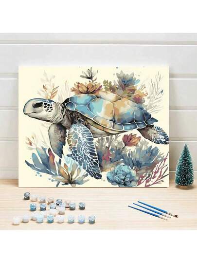 1入組油畫幻想海龜花無框畫,按數字繪製的手繪動物畫,家居裝飾藝術 - 彩色 - 查看 1