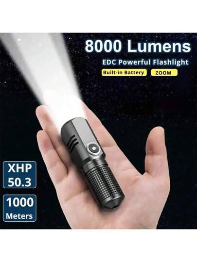 1入組p50 Led Usb C充電迷你手電筒,8000lm強大可調焦手電筒,可一鍵關閉,3種模式,使用type C充電線 - 短款(附18350電池) - 查看 1