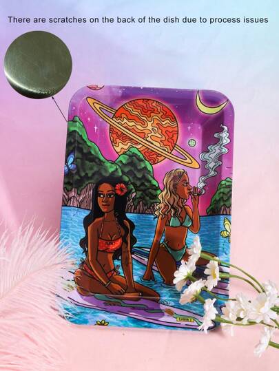 1入組繪有女子衝浪設計,美女系列方形盤、煙灰盤,抽煙配件,輕盈小巧的個人工具和禮物 - 彩色 - 查看 1