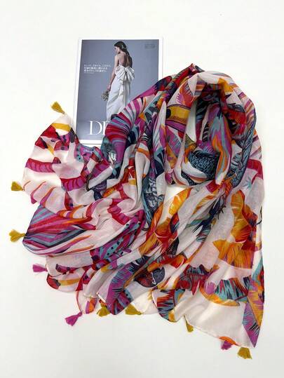 1条鹦鹉图案独特可爱精美设计轻盈百搭的春夏围巾,时尚亮丽色彩系列,女士适用