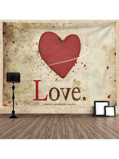 1片桃絨絨絨ins背景佈幕,用於情人節室內牆掛織物裝飾,大紅心設計,派對裝飾用品 - 軍綠色 - 查看 3