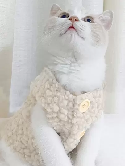 1件寵物背心羊皮毛絨泰迪寵物衣服,保暖秋冬狗貓衣服 - 杏色 - 查看 5