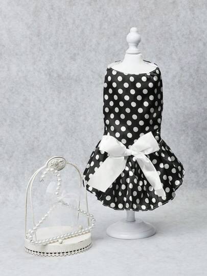 1件宠物婚礼波点礼服,适合猫狗 - 黑與白 - 查看 2
