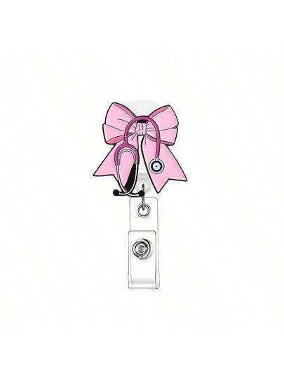 1个粉色蝴蝶结听诊器造型可伸缩胸牌夹,适用于护士、医生、办公室工作人员 - 医用听诊器造型,适用于医院、诊所、工作场所,胸牌夹 - 粉色 - 查看 1