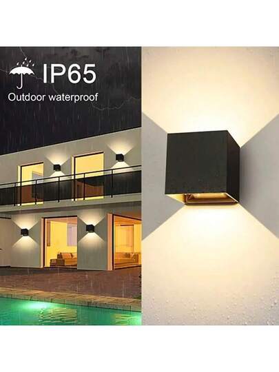1 件塑料太阳能壁灯,户外防水洗墙灯,适用于庭院、别墅、阳台、特殊墙壁、上下灯、门的可调节光照角度;1 件硬接线 LED 户外壁灯,内部/外部,上下灯,Ip65 防水,现代黑色 10w 3000k 暖光,方形铝制壁灯具,适用于户外,户外花园照明,适用于小路、庭院、露台