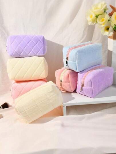 1个毛绒格子化妆包,大号拉链旅行洗漱包,多功能收纳袋,大容量,毛绒收纳袋,旅行化妆品整理包,便携式化妆包,大容量收纳袋,格子化妆包,女士手提包,毛绒拉链化妆包,女士简约拉链旅行包,沙滩包,收纳袋,口红收纳袋,便携式旅行洗漱包