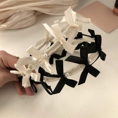 1件涤纶休闲蝴蝶结发带,适合所有季节 - 黑色+白色 - 查看 1