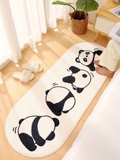 1入組,採用聚酯纖維製成的可愛熊貓卡通設計防滑柔軟舒適床邊墊飾品 - 彩色 - 查看 1