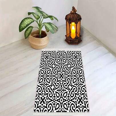 1件便携式流苏地垫,可折叠跪垫,祈祷毯,适合室内外使用,可放置于书房、走廊等处,防滑装饰地毯 - 黑與白 - 查看 10